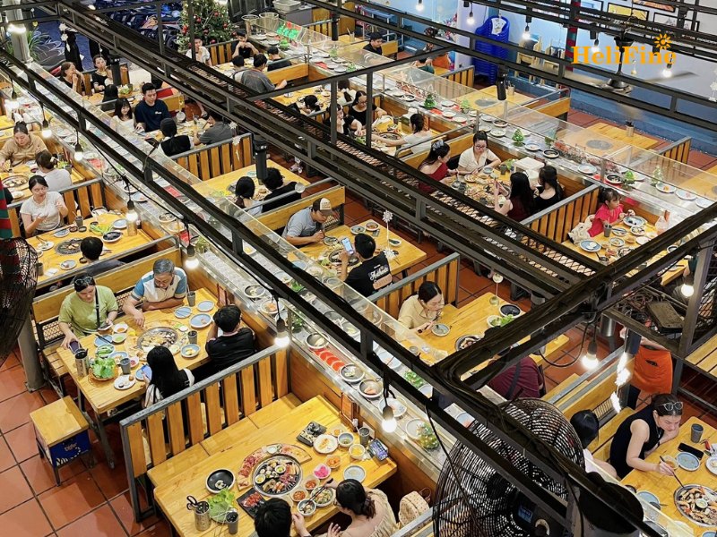- Điểm nổi bật: Thiết kế theo phong cách nướng đường phố Hàn Quốc, menu đa dạng với các loại thịt và panchan tự chọn.