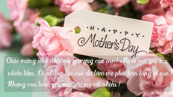 Chúc mừng sinh nhật mẹ yêu. Con chúc mẹ luôn khỏe, trẻ đẹp mãi trong mắt của Cha, luôn bao la tình thương khi con có lỗi lầm. Được sum vầy bên mẹ cha là hạnh phúc nhất của đời con. Con hôn mẹ cái nè…