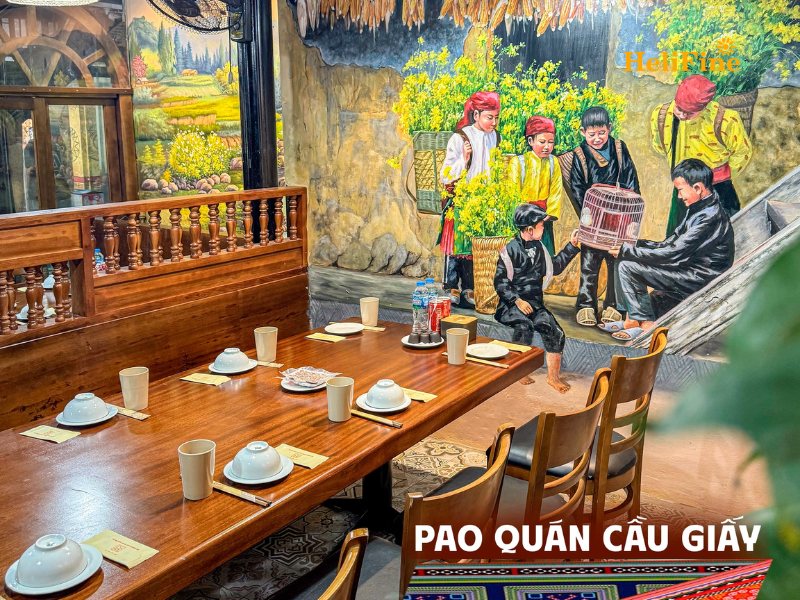 Tái hiện không gian văn hóa Tây Bắc mộc mạc với suối nước và cây xanh, Pao Quán là quán ăn ngon ở khu vực Cầu Giấy lý tưởng cho những ai yêu thích ẩm thực dân tộc. Các món đặc sản như cá bống suối, lợn mán hay lẩu thắng cố tại đây luôn giữ được hương vị nguyên bản của núi rừng.