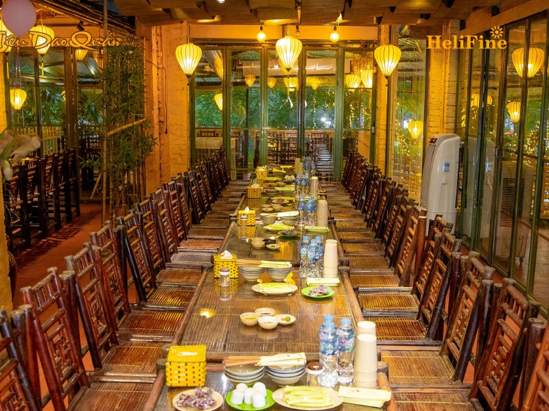 - Điểm nổi bật: Kiến trúc tre nứa thoáng mát; món "Gà nướng Tiêu Dao" và "Lẩu cua đồng" được thực khách đánh giá rất cao.