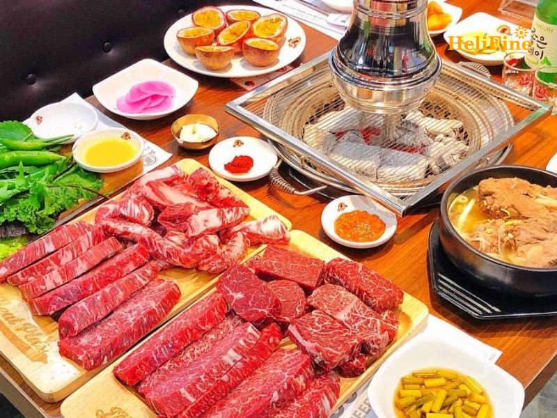 - Điểm nổi bật: Nhà hàng nổi tiếng với món sườn bò Mỹ (LA Galbi) và sử dụng than Bijang (loại than sạch không chứa lưu huỳnh). Cộng đồng mạng thường dành nhiều lời khen cho quầy Panchan (đồ ăn kèm) với các loại salad hữu cơ tươi ngon được phục vụ không giới hạn. Đây là điểm cộng lớn giúp cân bằng vị giác khi thưởng thức nhiều đạm.